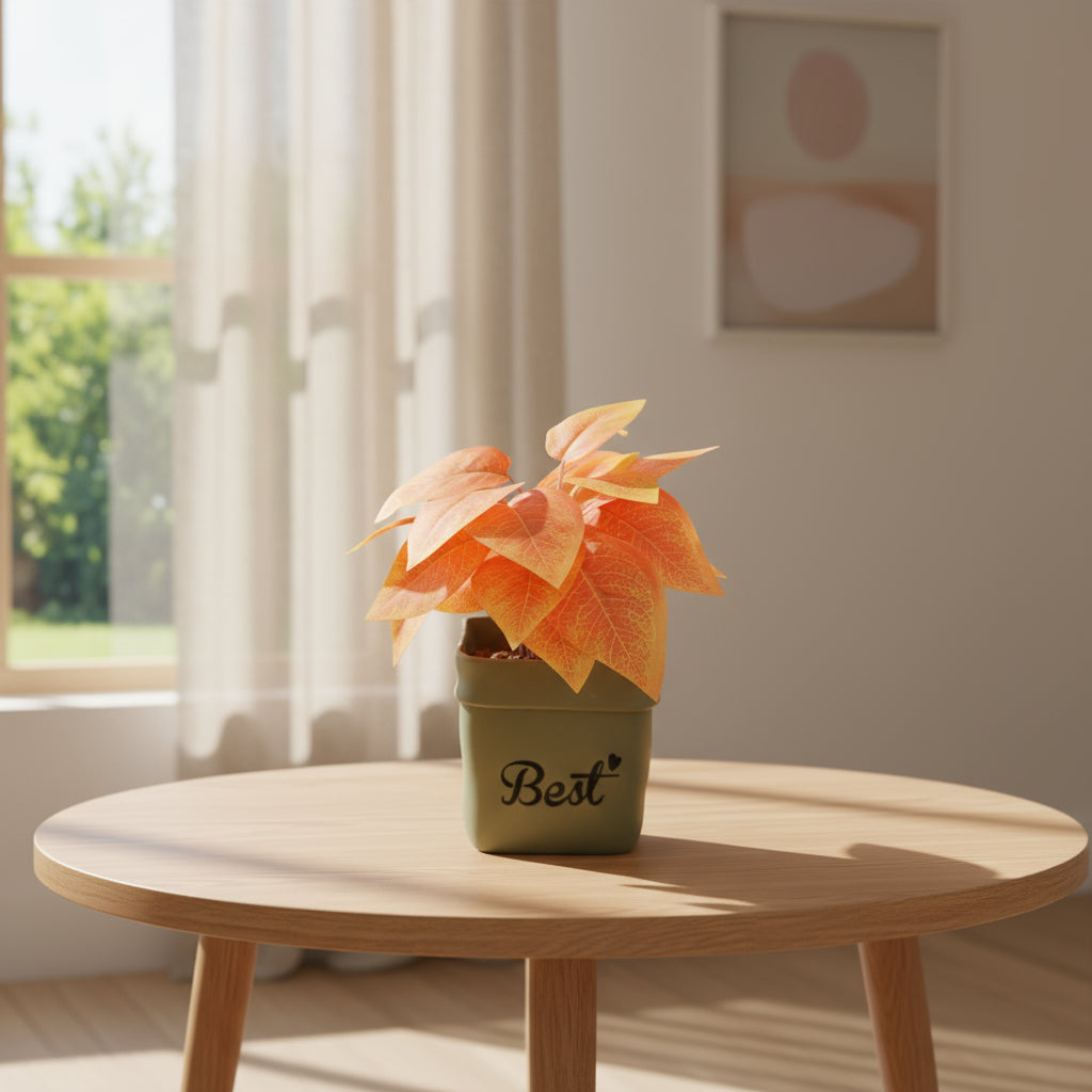 This artificial potted plant from Aavana Greens is a small, decorative indoor planter designed to mimic a real potted plant — but without the care, maintenance or watering that live plants require. The plant is made from synthetic materials (rubber-mixed plastic), and comes with a plastic pot as part of the arrangement. its compact size makes it perfect for tabletops, desks, bookshelves, windowsills, office work-stations, or any small corner of your home or office that needs a touch of green. Its foliage is crafted to resemble natural leaves with layered, realistic texture and shape — aiming for an “always-fresh, natural” look without wilting, shedding, or getting messy. Because it’s artificial, you don’t have to water it, provide sunlight, or trim it — making it a low-maintenance option for people who like a bit of greenery but don’t have time (or interest) in plant care.