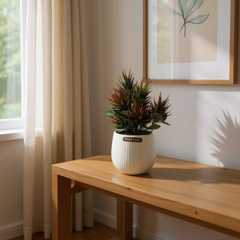 This artificial potted plant from Aavana Greens is a small, decorative indoor planter designed to mimic a real potted plant — but without the care, maintenance or watering that live plants require. The plant is made from synthetic materials (rubber-mixed plastic), and comes with a plastic pot as part of the arrangement. its compact size makes it perfect for tabletops, desks, bookshelves, windowsills, office work-stations, or any small corner of your home or office that needs a touch of green. Its foliage is crafted to resemble natural leaves with layered, realistic texture and shape — aiming for an “always-fresh, natural” look without wilting, shedding, or getting messy. Because it’s artificial, you don’t have to water it, provide sunlight, or trim it — making it a low-maintenance option for people who like a bit of greenery but don’t have time (or interest) in plant care.